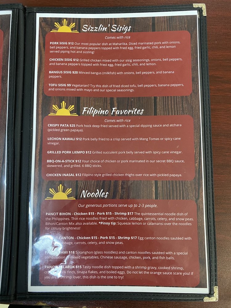 Highlights include the crispy Chicken Wings and delightful Fish & Chips, alongside vegetarian options like Buttered Corn and Fish Balls, catering to various dietary preferences. With a full bar and live music frequently on offer, dining at Maharlika promises an experience that tantalizes both the palate and the senses. The generous portions and lively ambiance create the perfect setting for groups and families, ensuring everyone leaves satisfied. Reserve your spot or enjoy the convenience of delivery!